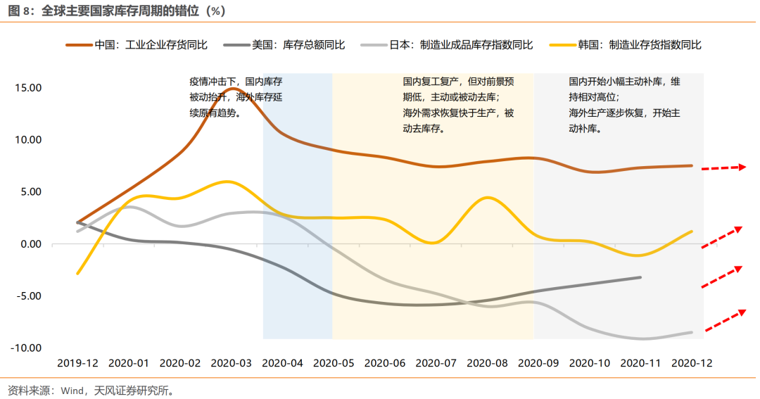 全球主要国家供需错位、库存周期错位,随着需求回暖,制造业短期的补库需求明确。