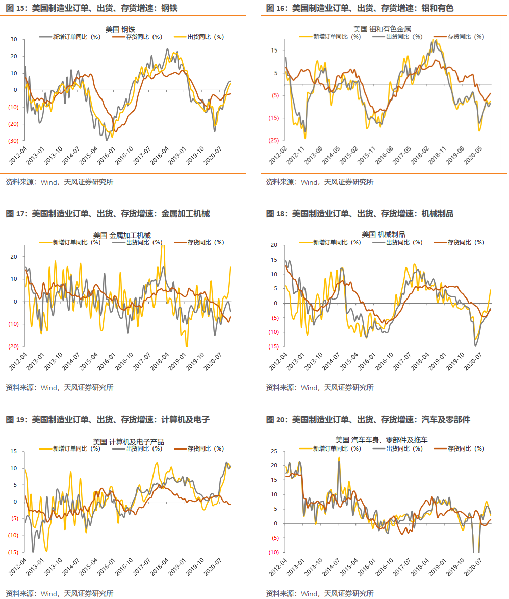 (2)从目前的库存增速来看,美国制造商未明显开始补库,滞后于零售商和批发商的补库进度。