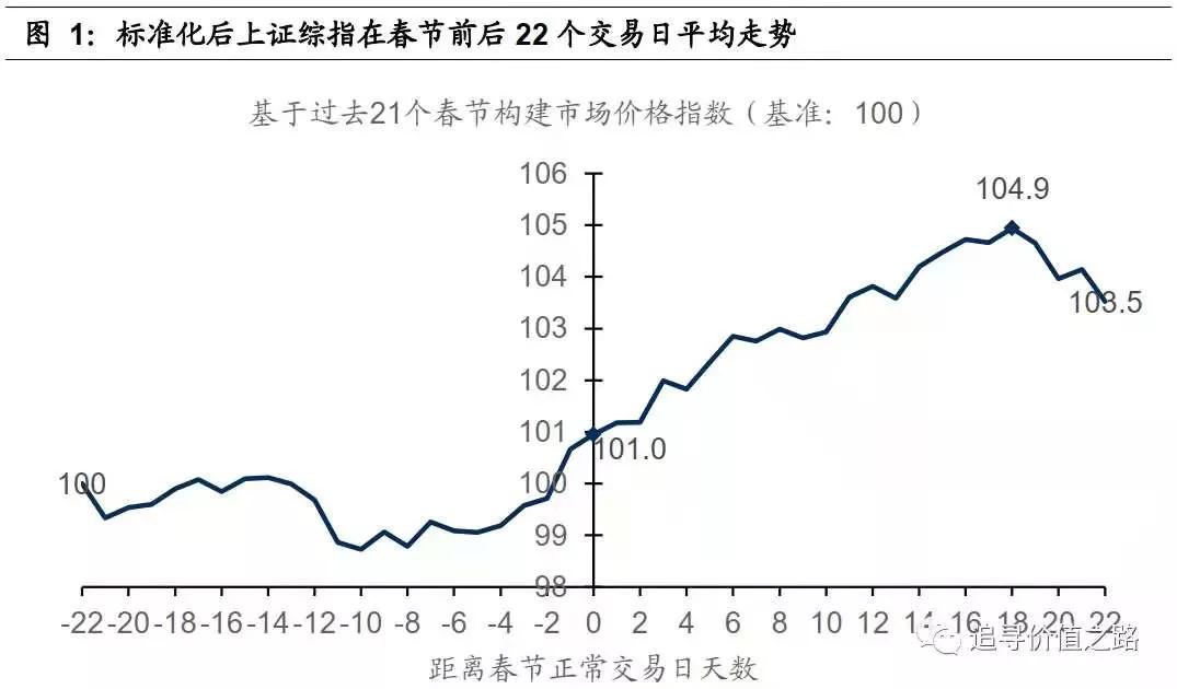 国信证券梳理过去21个年度春节前后市场价格平均走势情况后指出,春节后A股市场上涨的概率较大且有一定的持续性。在过去的21年中,春节开盘后一周(5个正常交易日)和一月(22个正常交易日)里,分别有16和14次上证综指呈现上涨,上涨概率分别为76%和66%,节后股市上涨的概率更高一些。