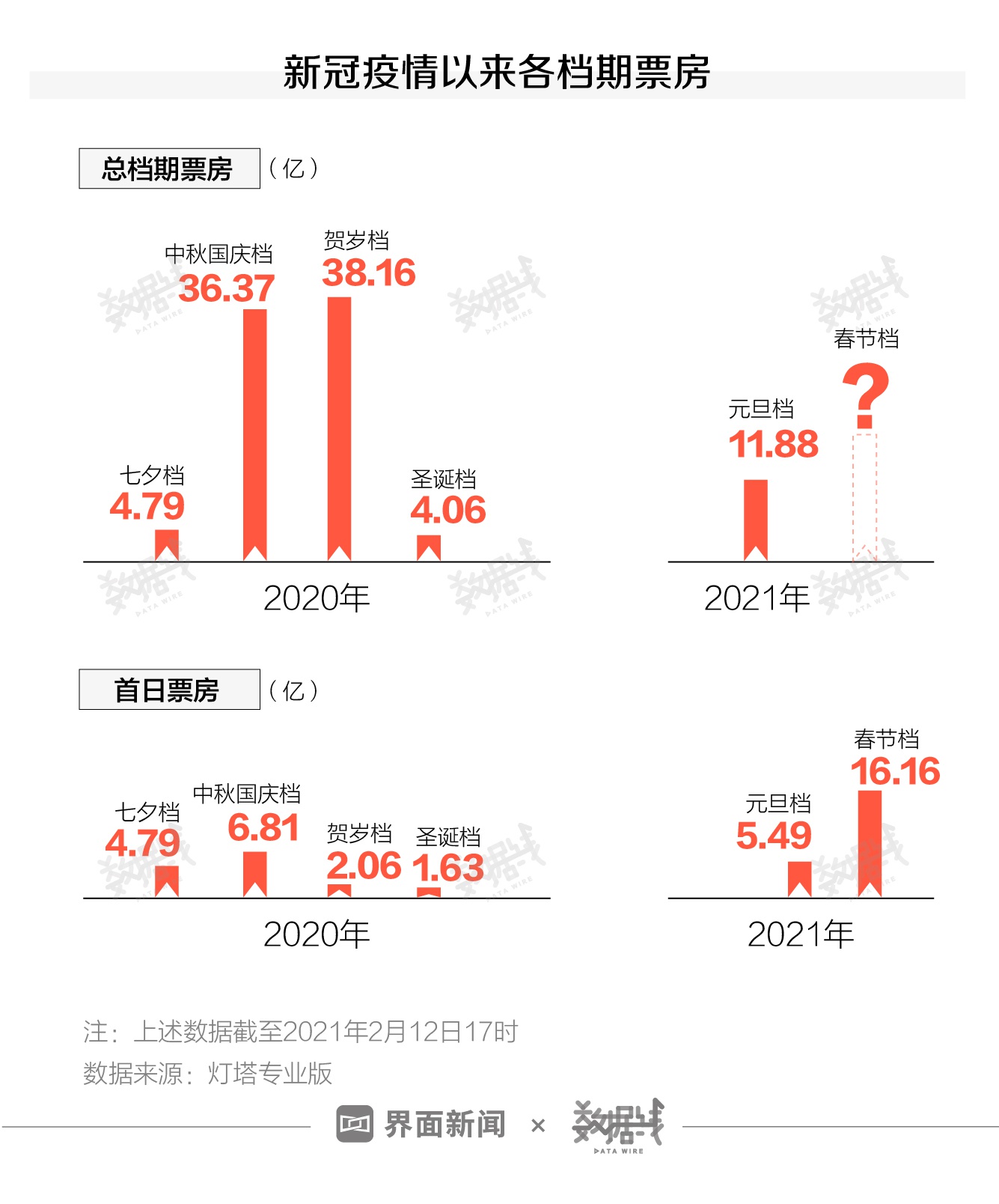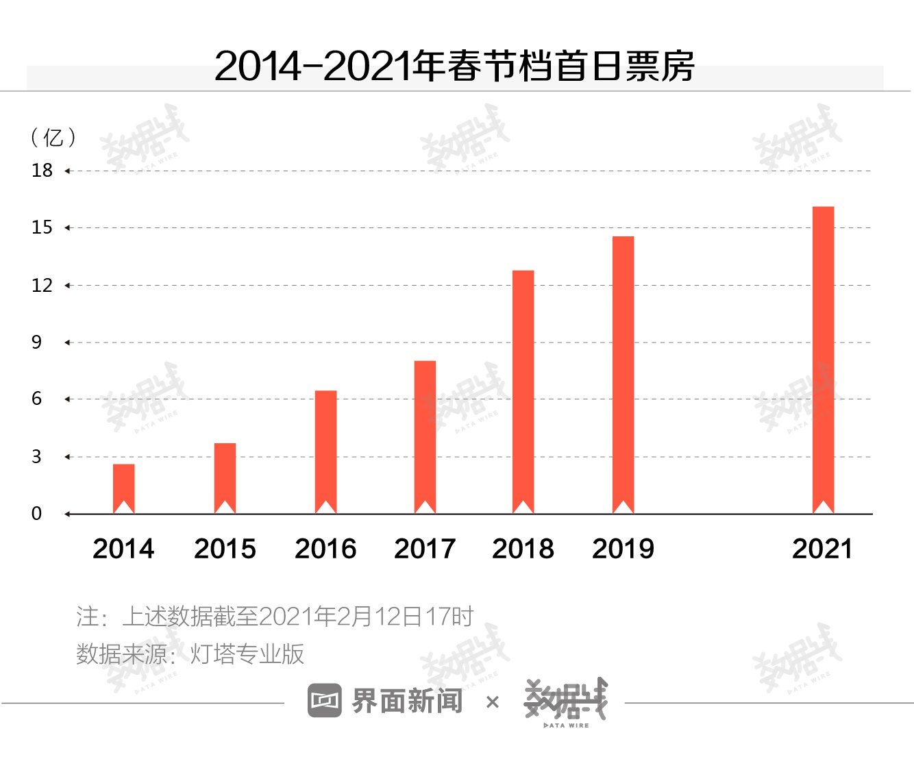灯塔专业版数据显示,今年大年初一破17亿的首日票房,已超过疫情以来七夕、中秋国庆、圣诞、贺岁及元旦在内所有档期(首日票房)。