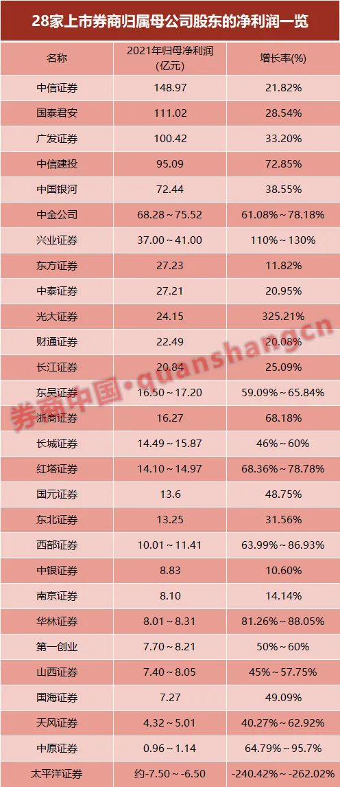 华林证券、红塔证券、中原证券、西部证券、中金公司、中信建投证券和中金公司等券商的净利润增幅达到60%以上。