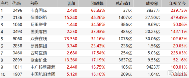 恒生港股通指数涨了1.86%,成交额占恒指近2/3,板块近9成个股上涨,涨幅超10%的不在少数。