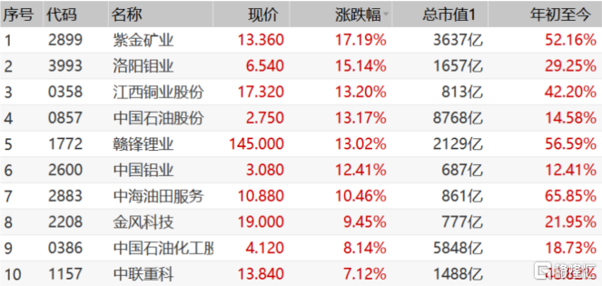 恒生港股通AH股H指数整体大涨3.1%,个股几乎全线翻红,涨超10%的也有7只。