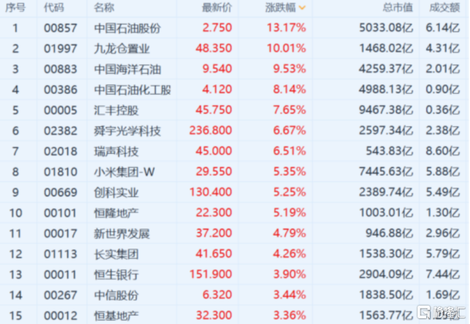 回看今天港股市场的最强板块表现,可以大概划分为几个属性:能源股、香港本地金融地产、港股通、小票股。