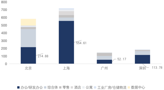 图:2020一线城市办公大宗交易成交金额(单位:亿元)