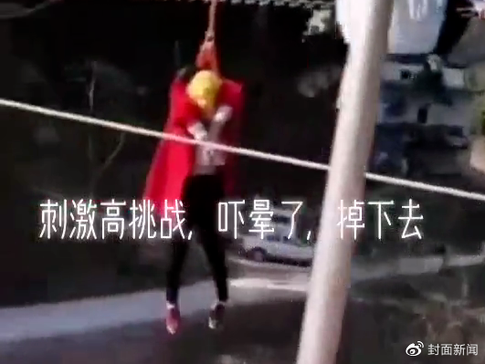 2月17日,网友爆料:2月16日,在四川中江县继光镇花溪地景区发生一起意外,一名玩空中走钢索的女游客,从钢索上跌落“悬挂”半空,挣扎中被吓晕过去,后又从安全带中滑脱,掉入下方的溪流中被救起。