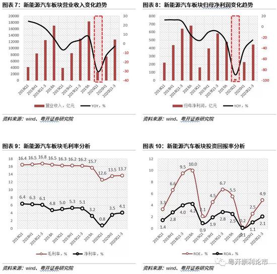 从营业收入以及净利润的变化趋势可以看出,整个新能源板块在2020年一季度由于疫情的大幅拖累收入及盈利都降至近几年的低点,进入二季度,随着疫情影响的减弱,业绩开始触底回升,新能源汽车板块景气度持续提升。