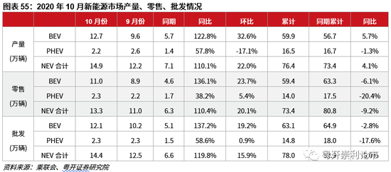 10月新能源乘用车销量突破14.4万辆,同比增长119.8%,环比9月增长15.9%。从细分品牌来看,10月新能源车市场多元化发力,五菱销量29711辆,以最大黑马态势夺冠,比亚迪、上汽、特斯拉分列2-4位,此外,以蔚来、理想小鹏为代表的国内造车新势力也表现优秀。