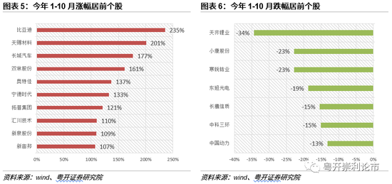具体到个股表现来看,今年1-10月,比亚迪、天赐材料、长城汽车、双林股份、奥特佳、宁德时代、拓普集团、汇川技术、新泉股份、新宙邦、亿纬锂能共11只股票的股价实现翻番。