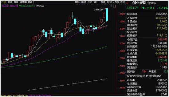 截至上午收盘,上证指数上涨0.39%,创业板指“高台跳水”,下跌3.23%,该指数上午振幅超过5%。