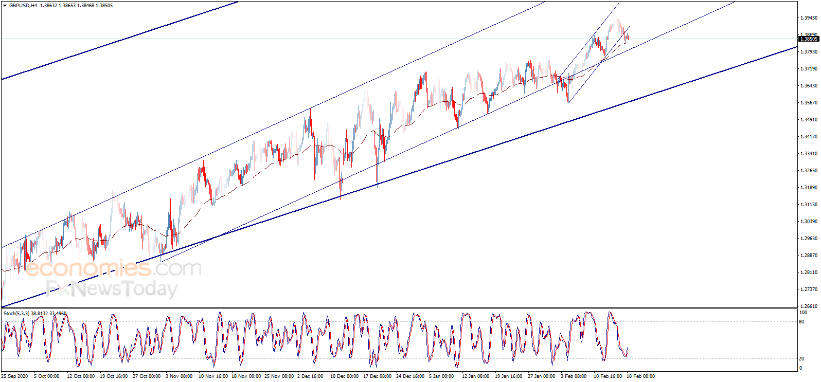 英镑/美元昨日跌破看涨通道支撑线,并收于这一水平下方,预计日内该汇价将继续面临看空压力,料首先测试1.3800水平,假如跌破这一水平,这将导致英镑/美元继续下滑并跌向下一看空目标1.3680,更下方目标位于1.3585区域。