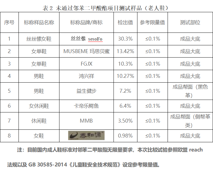 “广州日报”微信公号2月18日消息,日前,广州市消委会、佛山市消委会共同发布了一个老人鞋测试报告。报告显示,40款老人鞋中,有8款样品未能通过邻苯二甲酸酯项目测试,其中一款超标竟高达302倍。