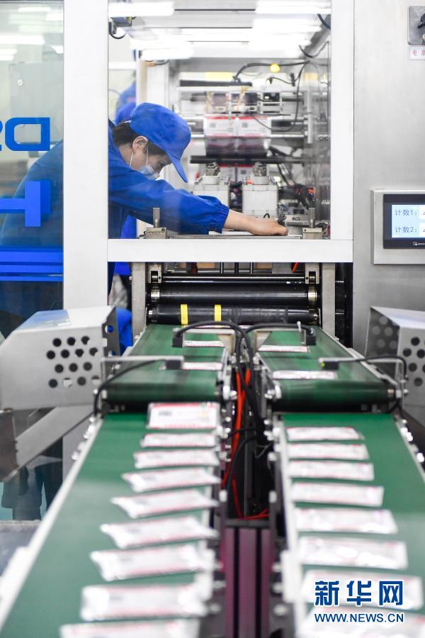 鲁春梅在车间内调试设备进行试生产(2月15日摄)。