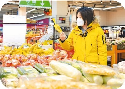 2月10日,消费者在山东省临沂市平邑县一家超市选购蔬菜。