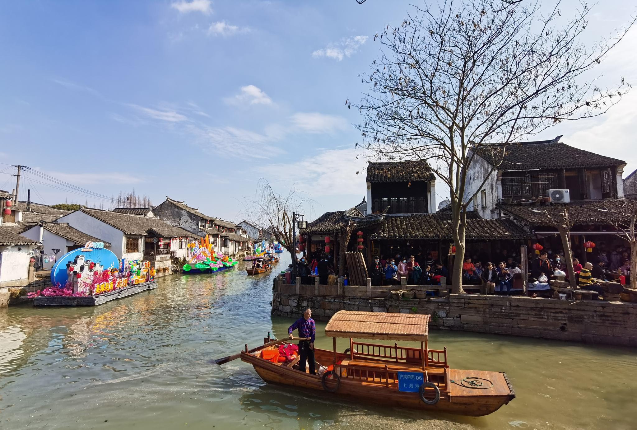2月14日,人们在上海枫泾古镇游览观光。新华社 图