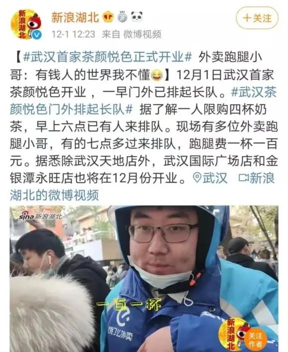 此前茶颜悦色在武汉开店:排队超8小时,黄牛炒到150一杯