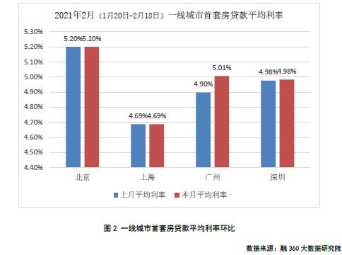 融360大数据研究院对全国41个重点城市674家银行分支机构房贷利率的监测数据显示,2021年2月(数据监测期为2021年1月20日-2021年2月18日),全国首套房贷款平均利率为5.26%,环比上涨4BP;二套房贷款平均利率为5.56%,环比上涨3BP。