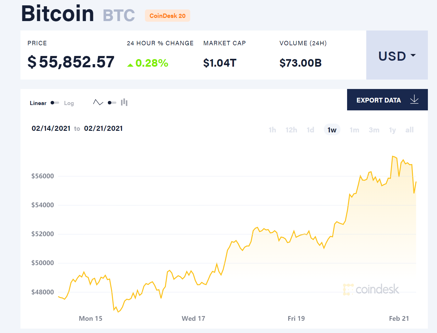 比特币价格飙升的部分原因是主要投资者和公司越来越多地采用比特币。纽约梅隆银行(Bank of New York Mellon)本月就表示,它将进军这一领域。毋庸置疑,马斯克也是这种数字货币的狂热支持者,此前还大手一挥购买了价值15亿美元的比特币。