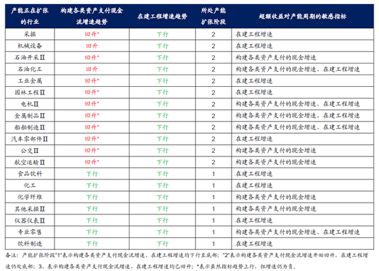 附表:当前产能周期即将上行,且超额收益对产能上行敏感的行业