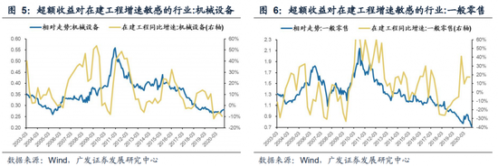 1. 行业超额收益与在建工程同比增速显著相关的细分行业:置信水平为99%的一级行业有钢铁、机械设备、农林牧渔等6个,二级行业有煤炭开采Ⅱ、采掘服务Ⅱ、石油化工等23个;置信水平为95%的一级行业有采掘、化工、有色金属等5个,二级行业有化学原料、电机Ⅱ、电源设备等10个。