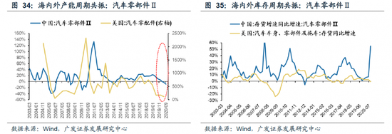 根据周期理论,当中周期与短周期共同上行时会形成景气共振;因此我们进一步选取中美库存周期与产能周期有望形成嵌套共振的细分行业:化工、汽车零部件Ⅱ。中美的化工和汽车零部件Ⅱ的库存周期在2003年以来也存在显著共振效应。中美化工行业库存周期下行至底部,即将迎来共振上行。中国汽车零部件Ⅱ行业的库存已经大幅增加,而美国的补库尚未开始但也接近底部,有望与中国形成共振上行。因而,化工和汽车零部件Ⅱ行业的产能周期上行或具备更高的弹性。