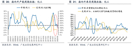 海外产能周期共振对支撑中国产能扩张,产能有望持续扩张的行业有:化工、石油化工、汽车零部件Ⅱ。疫情冲击下,全球产能周期迎来同步扩张的契机。对比之后发现,中美化工和汽车零部件Ⅱ行业的产能周期存在共振,且都处于周期底部,产能周期有望同步开始扩张。