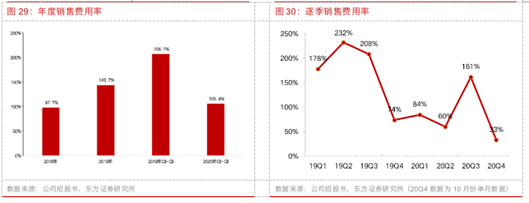 (3)进校成本逐步呈现规模效应,边际上低价课成本呈现为变动成本,整体来看销售费用率逐步下降,20-22E分别为77.8%/77.1%/64.5%。
