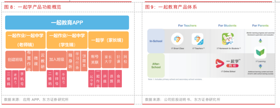 校内+校外资源整合,十年奋斗成功赴美上市。一起教育于2011年创立,以“让学习成为美好体验”为使命,打造“校内+校外”集成模式,为K12阶段的学校、家庭提供高效的智能教育产品。公司从创立至今共吸引了顺为资本、老虎基金、淡马锡、中信产业基金等知名投资机构。在2020年12月4日,公司正式在纳斯达克挂牌上市,股票代码为YQ。