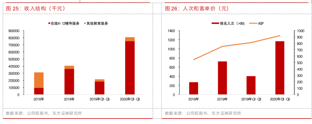 转型K12在线大班业务,人次客单价走入正轨。2019年公司收入为4.06亿元,同比增长283%,其中在线K12辅导业务收入3.60亿元,同比增长283%,其他服务为0.47亿元,下降78.5%,产品服务已经切换到在线大班赛道。20年前三季度K12在线服务收入为7.51亿元,yoy+312%,呈现早期放量态势,具体拆分人次和客单价,前三季度人次达到116.8万人次,yoy+188.4%,客单价为921元,同比增长13.4%。