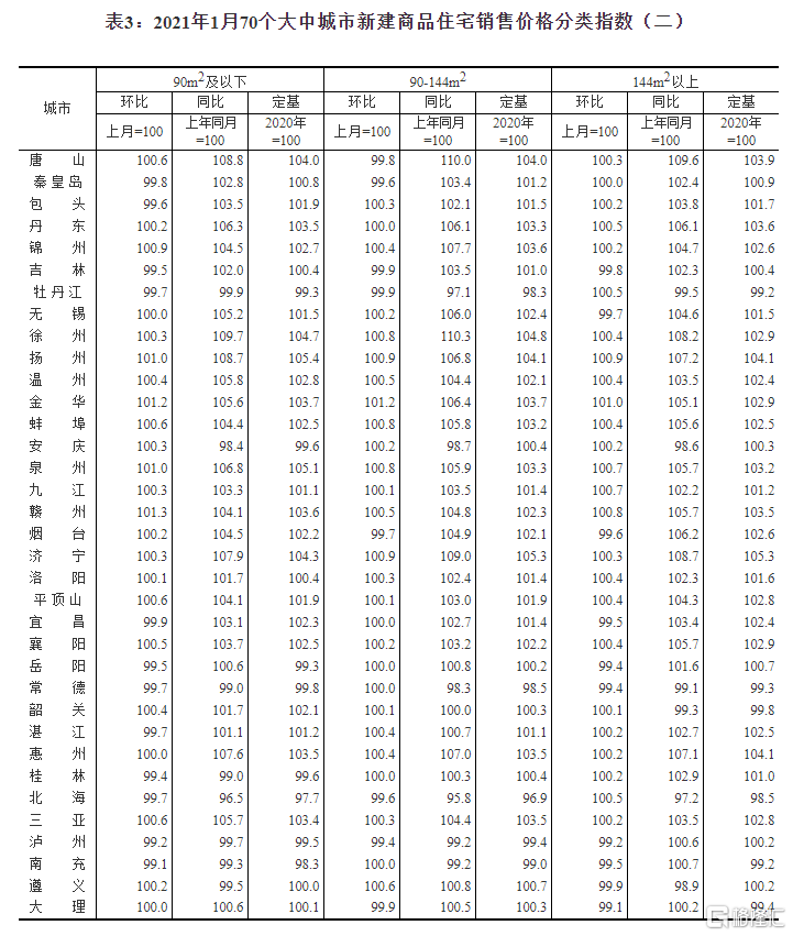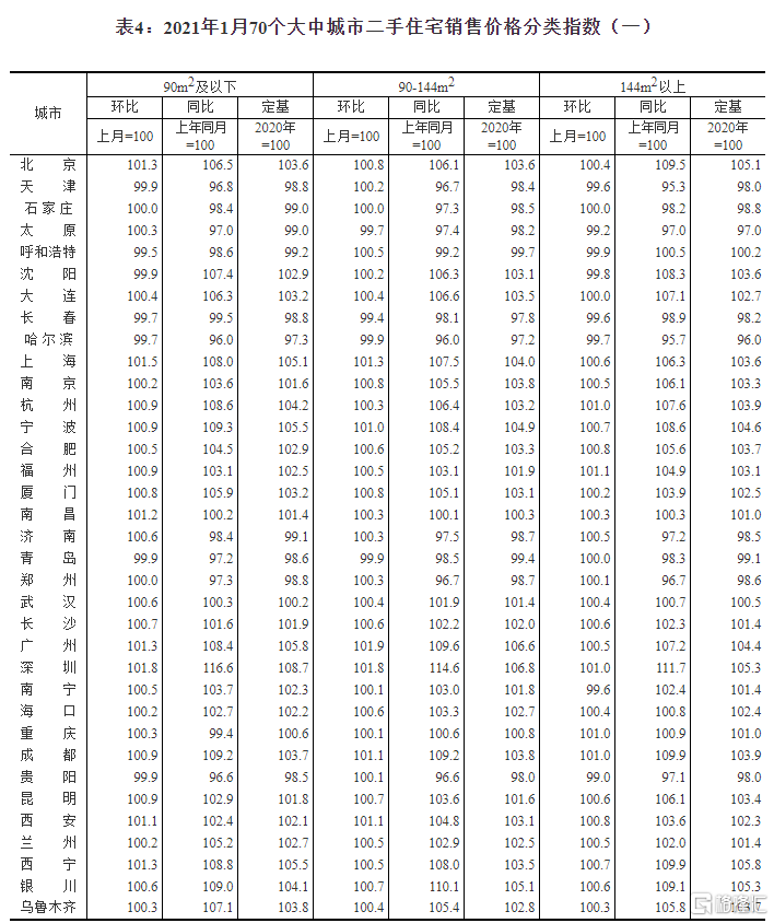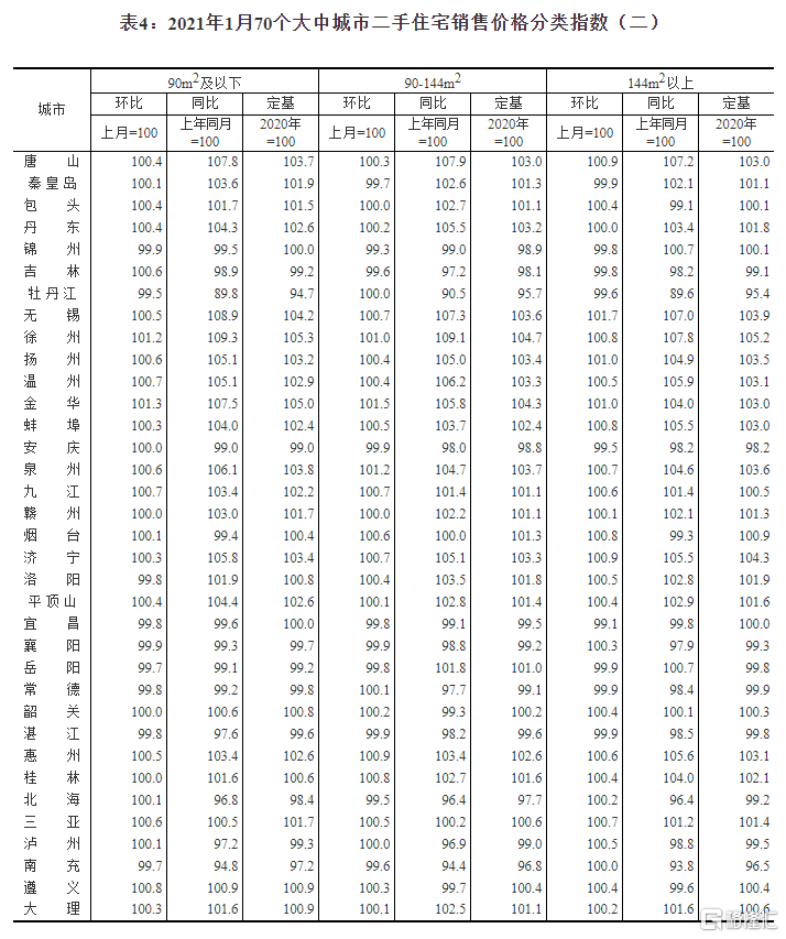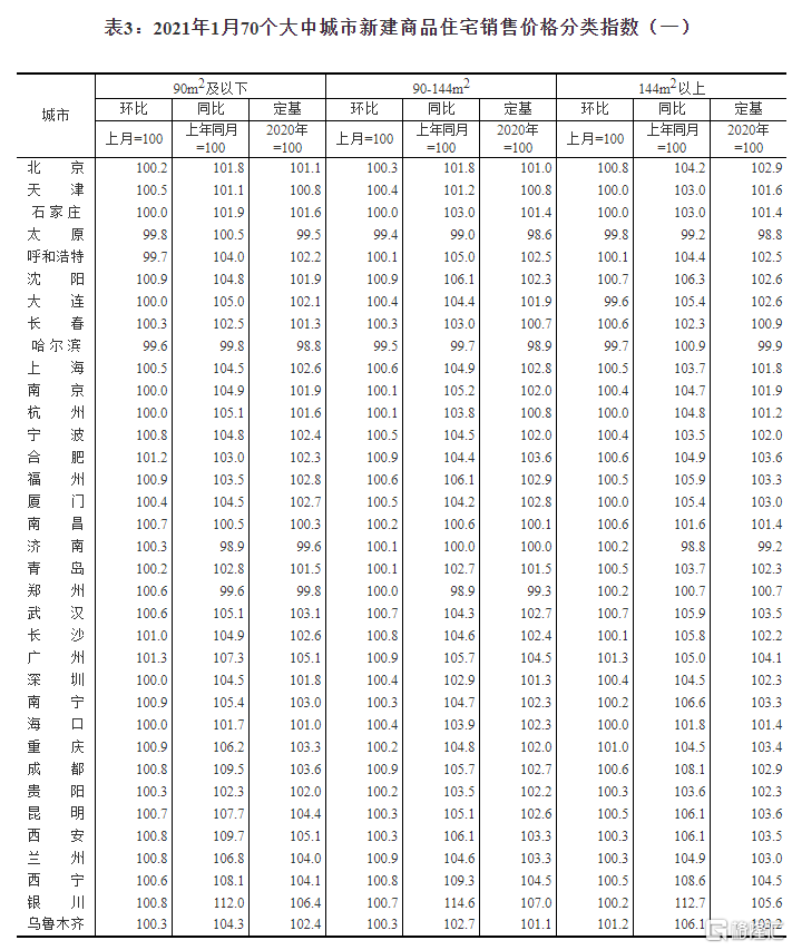 附:2021年1月份70个大中城市商品住宅销售价格变动情况