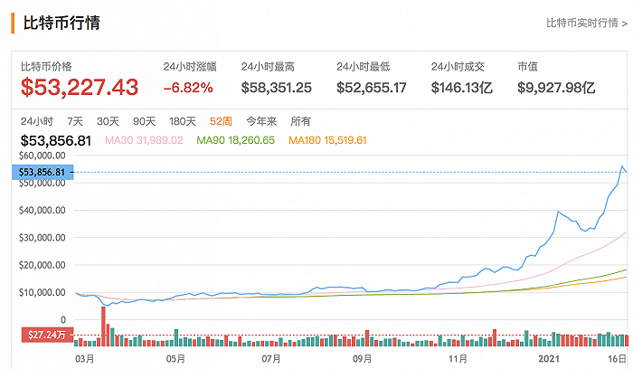 最近,比特币从32000美元涨到58000美元,暴涨81%只用29天,比17世纪的郁金香泡沫还来劲!由此,比特币市值超过10000亿美元。