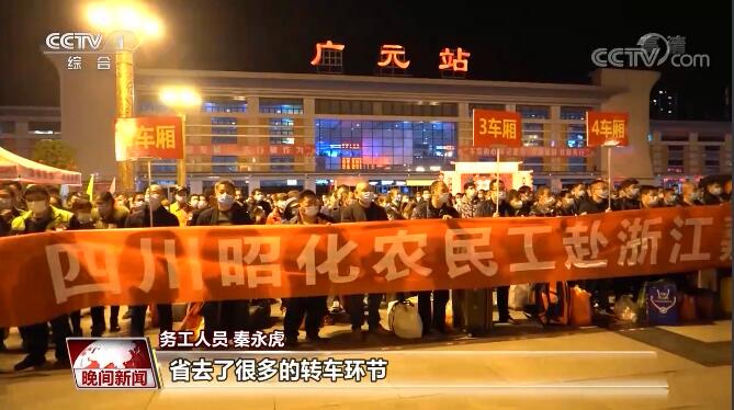 在四川广元,23日,当地也加开了四川广元至浙江海宁的务工专列,将695名外出务工人员“点对点、门对门”送到务工地。据了解,今年春节前,当地人社部门和交通运输部门就成立了务工人员返岗服务领导小组,摸排务工出行信息。