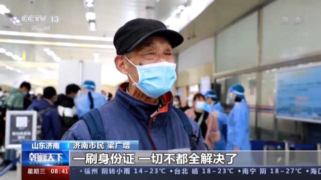 济南市民 梁广增:就去年来到这里以后,也得填表,也得(登记),手机又不会玩,扫二维码扫不上。现在一进这个机场以后,一刷身份证,一切不都全解决了,挺方便。