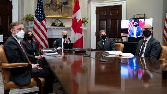 在与特鲁多举行首次双边会晤后,拜登在讲话中说:“我们将启动一个高级别的、具有气候雄心的部长级会议,并调整我们的政策和目标,以在2050年之前实现净零排放。”