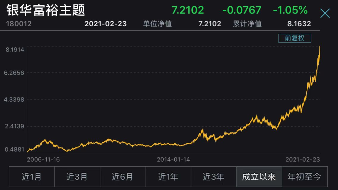这位母亲大概在2009年时买入,迄今接近12年时间。截至今年2月23日,银华富裕主题混合成立以来收益率1362.14%,近三年收益率156.98%,近一年收益90.64%。
