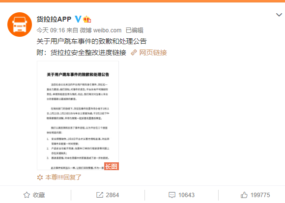 2月24日,货拉拉再次致歉,反思了平台存在的安全预警缺失等问题,并展开安全整改。