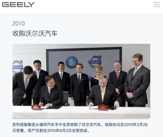 2010年3月28日,吉利控股与福特汽车签署最终股权收购协议,获得沃尔沃汽车100%的股权及相关资产。外界将李书福的这次收购视为一场“豪赌”。