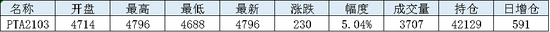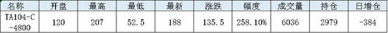 行权价为4800的PTA认购期权盘中上涨135.5,涨幅258.1%。