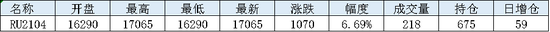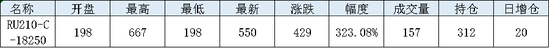 行权价为18250的橡胶认购期权上涨429,涨幅323.08%。