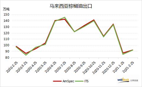 据马来西亚检验机构AmSpec Malaysia周四公布的数据显示,马来西亚2月1-20日棕榈油出口量为921,929吨,较上月同期的872,707吨增加5.64%,增幅较前20日继续收窄;船运调查机构ITS公布的数据则较上月同期增长8%至919,765吨。由于本月仅有28天,市场预计2月出口总量可能仅为93-95万吨,整体需求情况不及市场最初预期,棕榈油出口放缓也令棕榈油涨势受限。