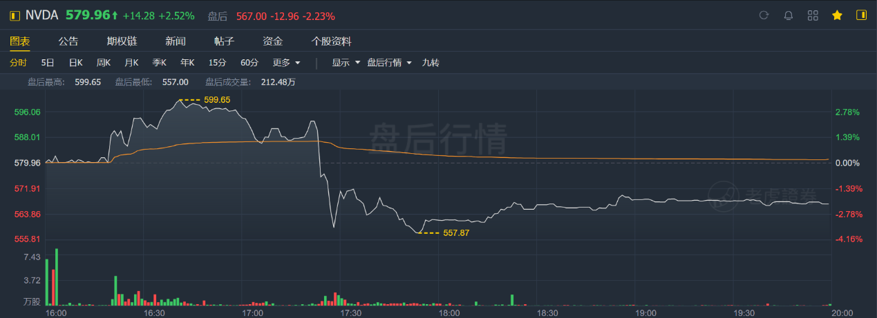 但令人意外的是,英伟达的盘后股价先涨后跌,最终收跌2.23%,颇耐人寻味。