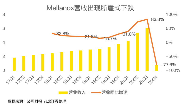根据此比例计算,mellanox四季度营收出现断崖式下跌,由三季度的6亿美元营收额下降至不足1亿美元!