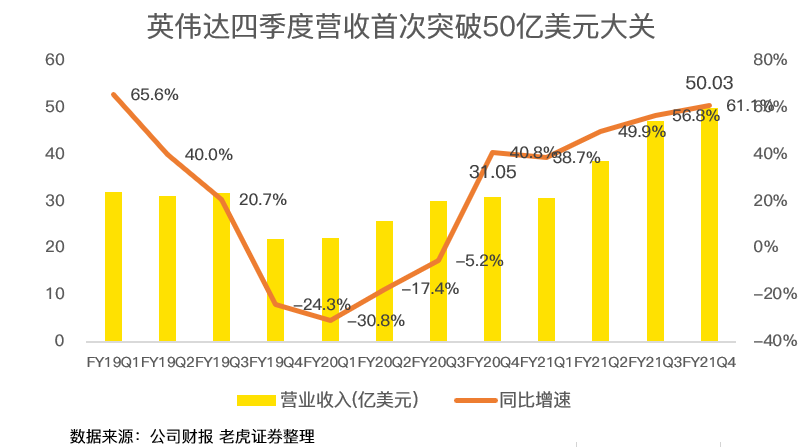 芯片巨头英伟达在昨日盘后公布了2021财年四季度财报(对应自然日2020.20.26-2021.1.31),当季营收首次站上50亿美元大关,创历史最佳成绩。