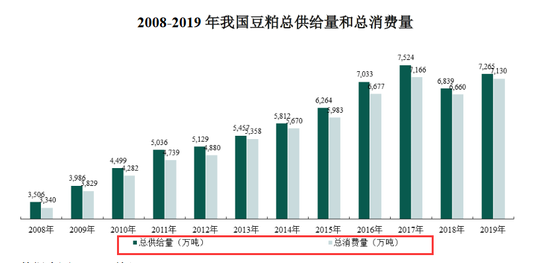 行业分析师认为,随着生猪市场的变化,豆粕价格下出现跌,这使得金龙鱼的饲料原料业务也不怎么卖得起价。而记者发现,在过去的十年里,我国得豆粕消费始终处于供大于求的状态。
