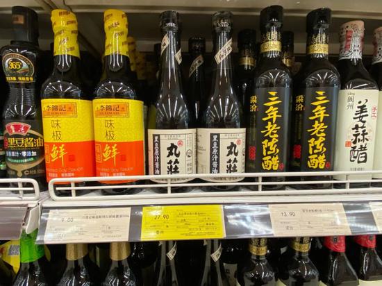 就以市场期待的金龙鱼凭借其渠道优势进军调味品领域而言,金融投资报记者发现,金龙鱼的“丸庄”酱油一瓶售价高达27.9元,虽然是高端产品,但旁边的李锦记仅卖9元。对此,有消费者表示,这个价格真是定得蛮高的,不知道市场是否能认可?