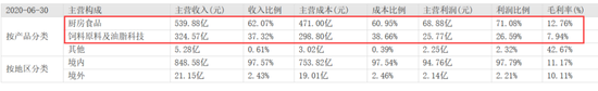 2020年中报显示,厨房食品收入为539.88亿元,收入占比为62.07%;饲料原料及油脂科技收入为324.57亿元,收入占比为37.32%。
