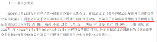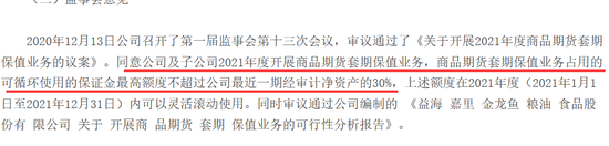 2020年12月14日,金龙鱼公告称,在2021年还将开展一系列的大宗商品套期保值和外汇套期保值业务。