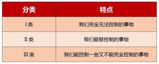 为了抑制我们去操心那些超出我们控制了的事物的倾向,斯多葛学派的哲学家建议我们对生活中的各种事物采取分类加优先处理的方法。
