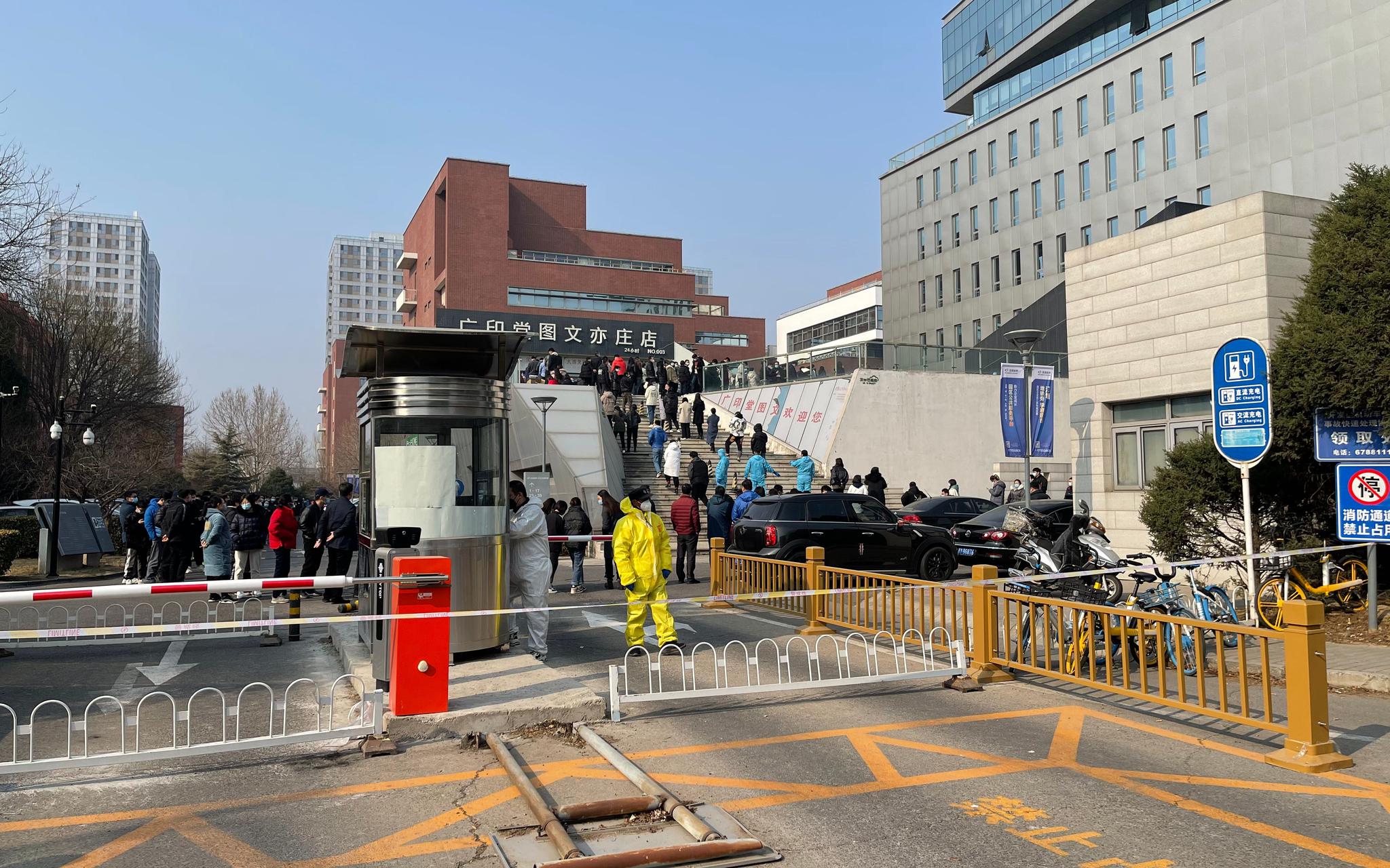 记者在北京经开·北工大软件园东南门外看到,园区已经实行封闭管理。工作人员称,园区内的人员正在排队进行核酸检测。记者在现场看到一名男子希望进入园区将停放在停车场的车辆开出,但被工作人员告知暂时不可以进入。工作人员称:“我们接到通知,车辆可以免费停放三天。”