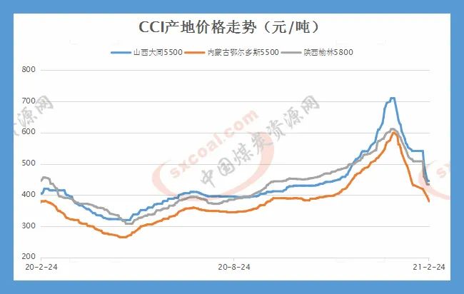中国煤炭资源网价格数据显示,截至2月24日